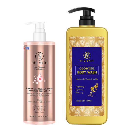 I got the body wash and lotion, and I am happy with the results in less than a month